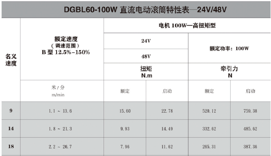 ①采用DGBL60-100W高扭矩電機,輥筒外管壁厚2.5,筒體可選碳鋼鍍鋅/不銹鋼304材質,提高承載。